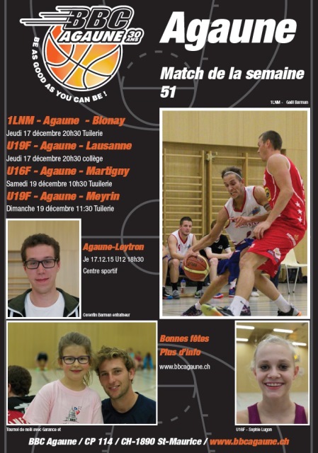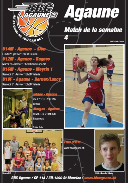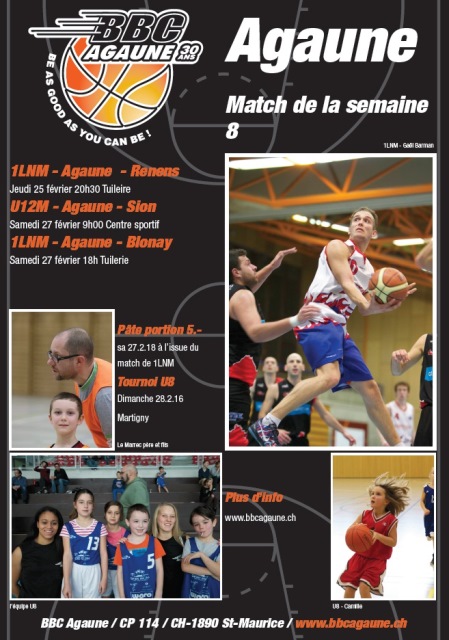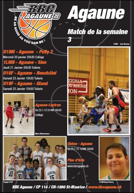 Agaune : Yoann Merz 17, Gex Baptiste 5, Luc Gilliéron 30, Gaël Barman 1, Guillaume Ducommun 2, Paciotti Michaël 11, Chesaux Issa 10, Urech Jérôme 7. Absents : Bertela Ludovic, Julien Boraley, Matéo Barman. Entraîneur : Chantal Denis